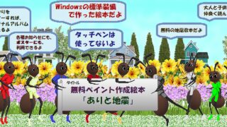 Windows標準装備 無料ペイント作成絵本「ありと地震」 完全無料!Windowsの3Dモデル、図形、などの画像とペイントを使用した絵本の作り方。前記Windowsを使用した完全無料の絵本「ありと地震」。前記Windowsの使い方(完全無料のオリジナルアルバム、ポスター、チラシなどの作成)。 2025.07.08 Windows標準装備