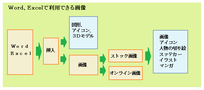 Windows/Word・Excelに装備されている挿入画像を利用したいと考えている方は、参考にしてください。