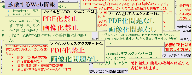 前記で著すように、「PDF化を禁止」「画像化を禁止」(情報1、2)は、Copilot.Microsoftの判断ですが、この情報の根拠とする情報は、(これは、あくまでも、老人ありの推測ですが‥‥、マイクロソフト社の既設ページの中には、根拠とする情報が見当たりませんので、)マイクロソフト社以外のA社から引用されています。