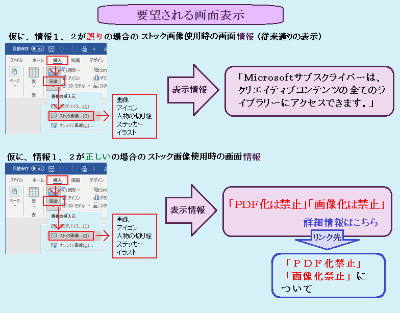 * 仮に、Copilot.Microsoftが正しい判断の場合は、ユーザーが間違いをしないように、挿入画像を使用するときに表示される画面(前記4-(1))に「PDF化を禁止」「画像化を禁止」につての表示がなされることを強く要望します。