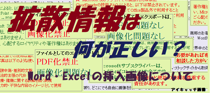 しかし、以上に記載したように、Windows/Word・Excel/挿入画像の使用には、正否が分からない情報が拡散していて、不安、戸惑いがあります。